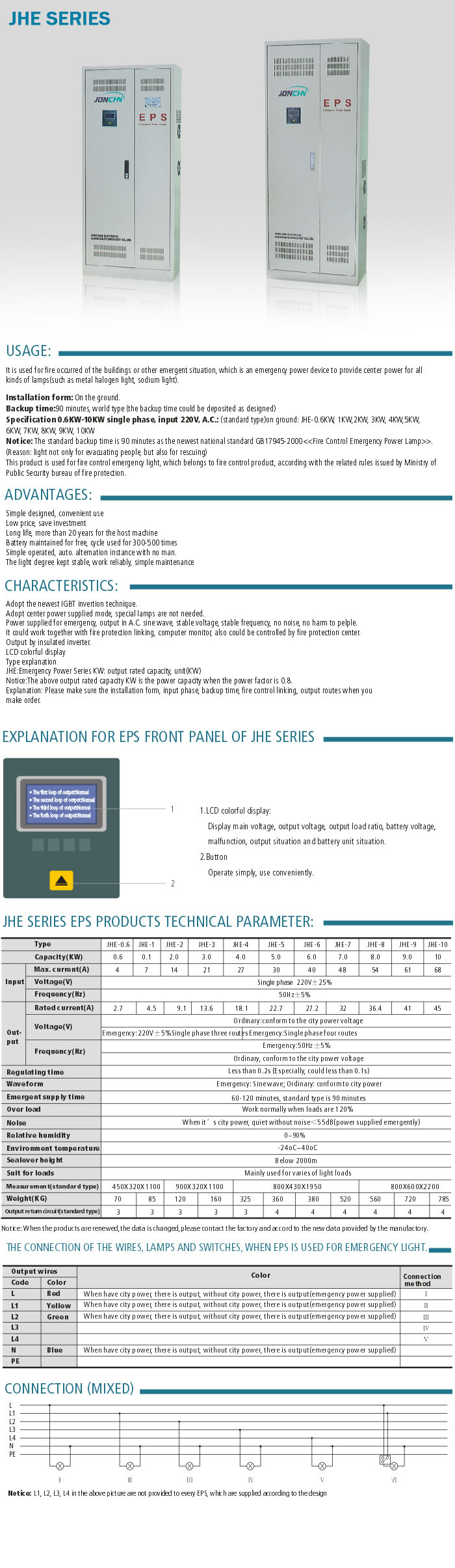 | JHE SERIES - CLASS:EPS EMERGENCY POWER SUPPLY |