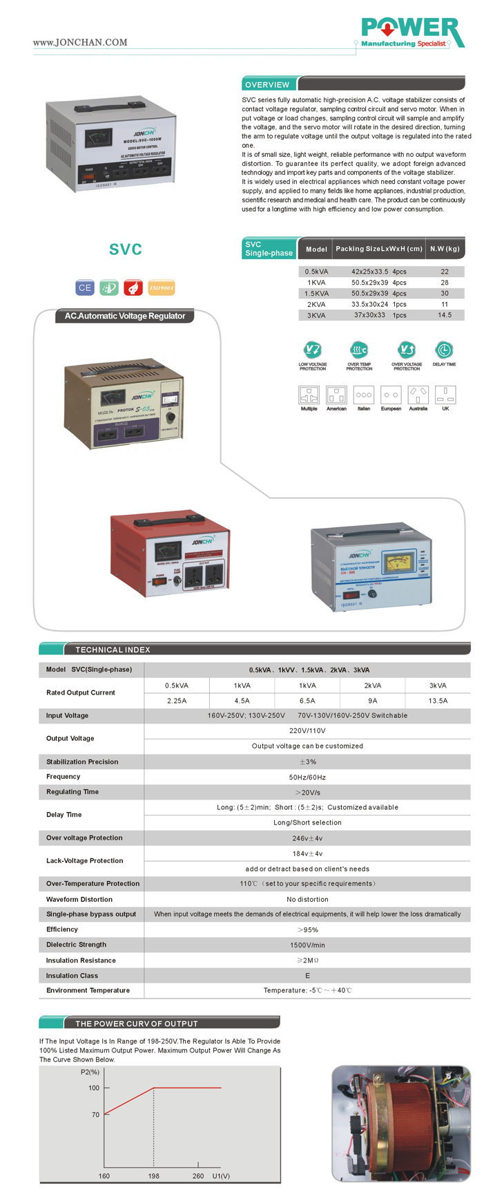 | SVC AC.Automatic Voltage Regulator(Single-phase) - CLASS:SVC SERIES SERVO MOTOR CONTROL STABILIZER |
