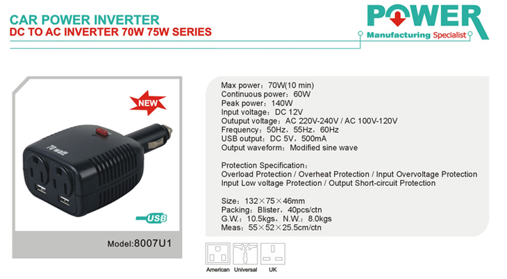 | 8007U1(USB) - CLASS:70W/75W POWER INVERTER |