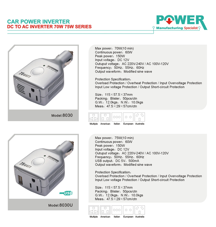 | 8030 OR 8030U(USB) - CLASS:70W/75W POWER INVERTER |