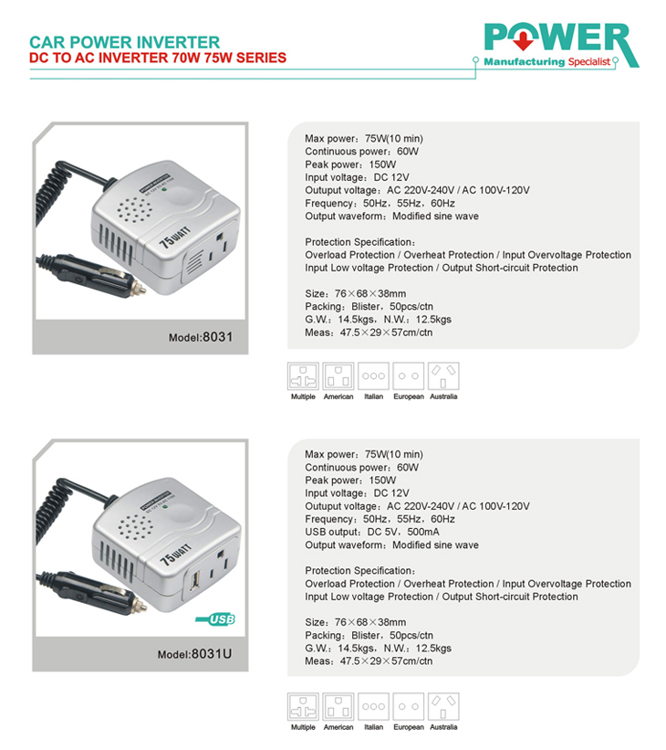 | 8031 OR 8031U(USB) - CLASS:70W/75W POWER INVERTER |