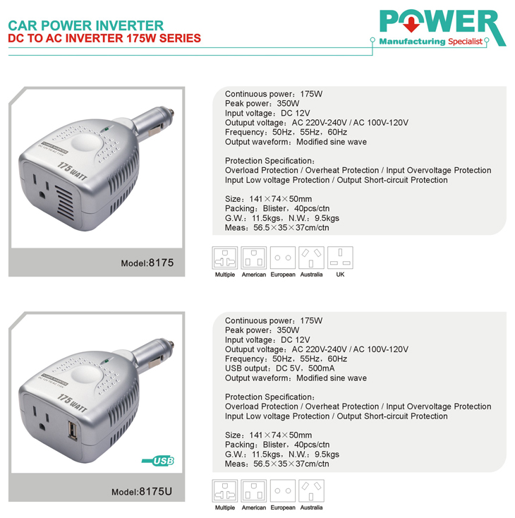 | 8175 OR 8175U(USB) - CLASS:175W POWER INVERTER |