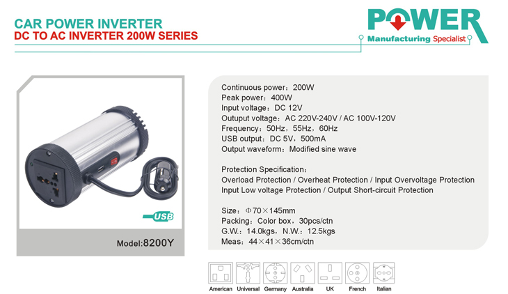 | 8200Y(USB) - CLASS:200W POWER INVERTER |
