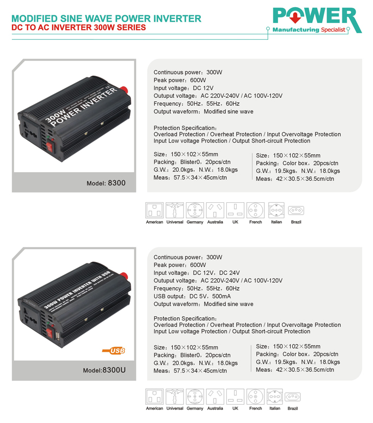 | 8300 OR 8300U(USB) - CLASS:DC TO AC INVERTER 300W 400W |