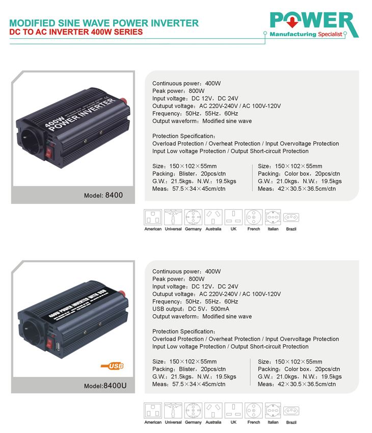 | 8400 OR 8400U(USB) - CLASS:DC TO AC INVERTER 300W 400W |