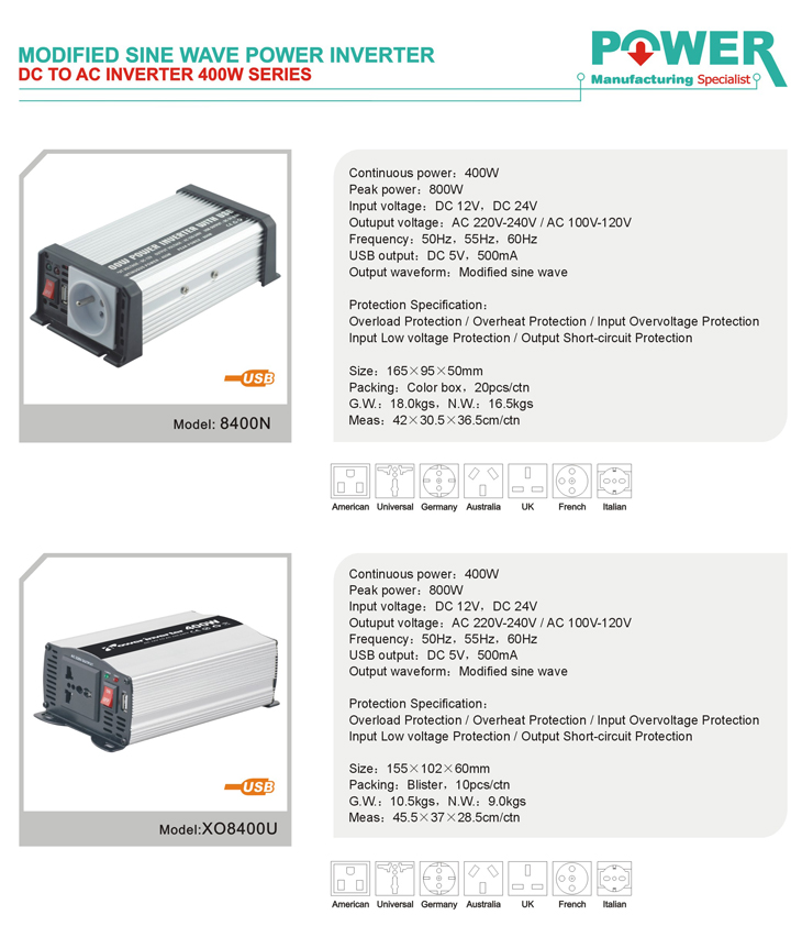 | 8400N(USB) OR XO8400U(USB) - CLASS:DC TO AC INVERTER 300W 400W |