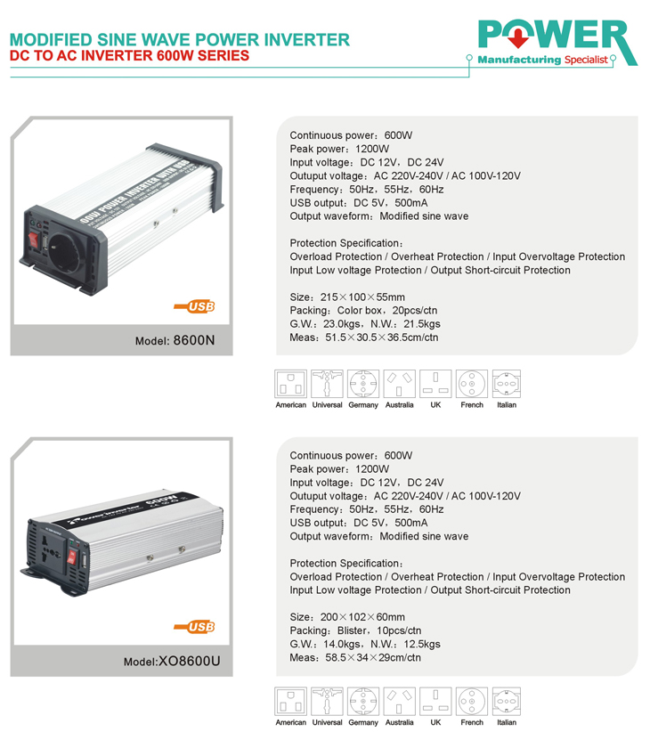 | 8600N(USB) OR XO8600U(USB) - CLASS:DC TO AC INVERTER 500W 600W |