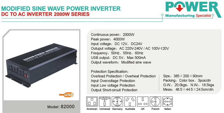 | 82000(USB) - CLASS:DC TO AC INVERTER 1500W 2000W 2500W 3000W |