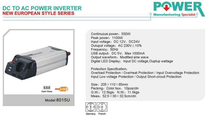 | 8015U(USB) - CLASS:DC TO AC INVERTER EUROPEAN |