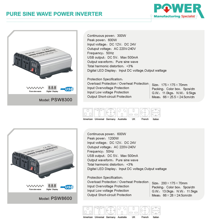 | PSW8300(USB) OR PSW8600(USB) - CLASS:PURE SINE WAVE POWER INVERTER |