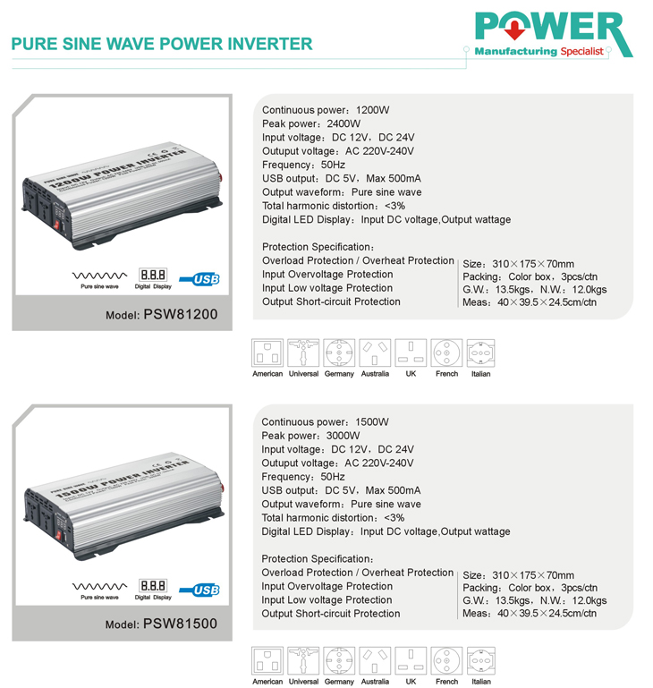 | PSW81200(USB) OR PSW81500(USB) - CLASS:PURE SINE WAVE POWER INVERTER |