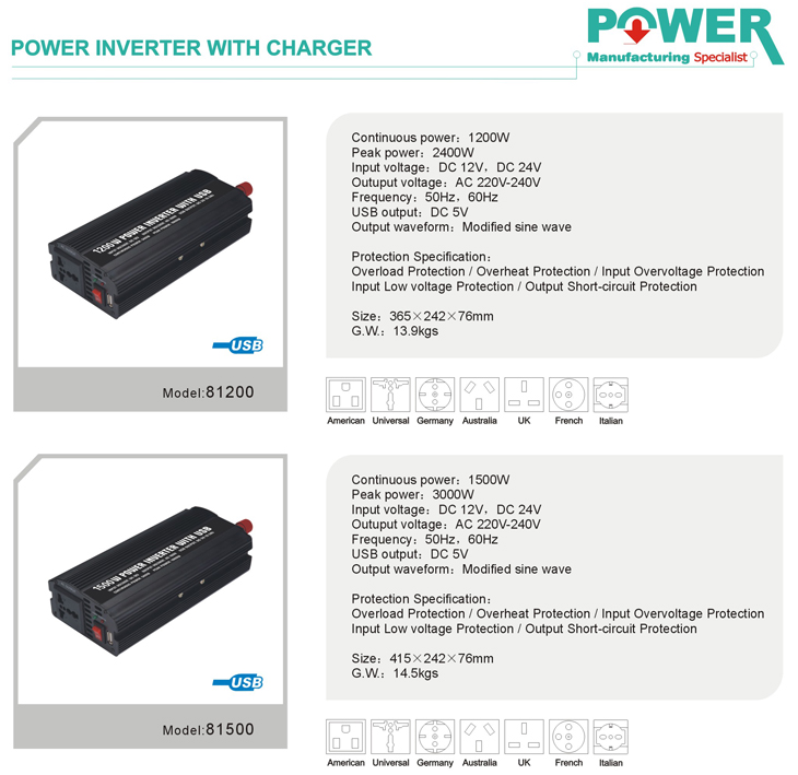 | 81200(USB) OR 81500(USB) - CLASS:POWER INVERTER WITH CHARGER |