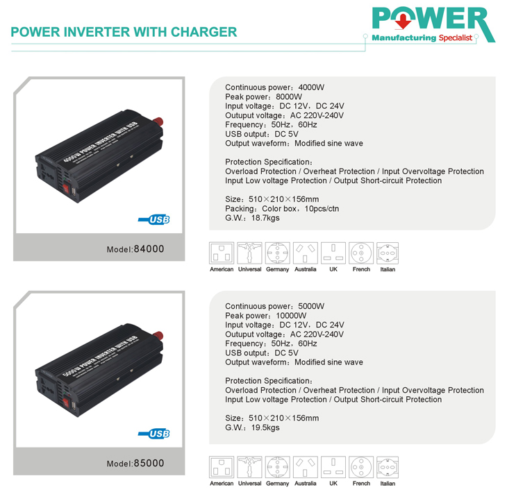 | 84000(USB) OR 85000(USB) - CLASS:POWER INVERTER WITH CHARGER |